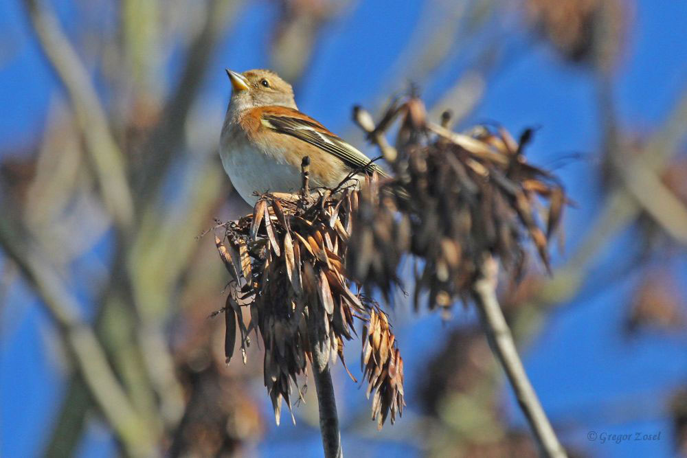 Bergfink nahrungsuchend in einer Baumkrone….am 10.11.2025 (Foto: Gregor Zosel)