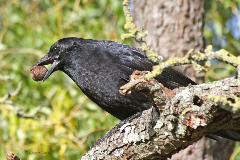 Rabenkrähe bei der Walnussernte….am 10.11.2025 (Foto: Gregor Zosel)
