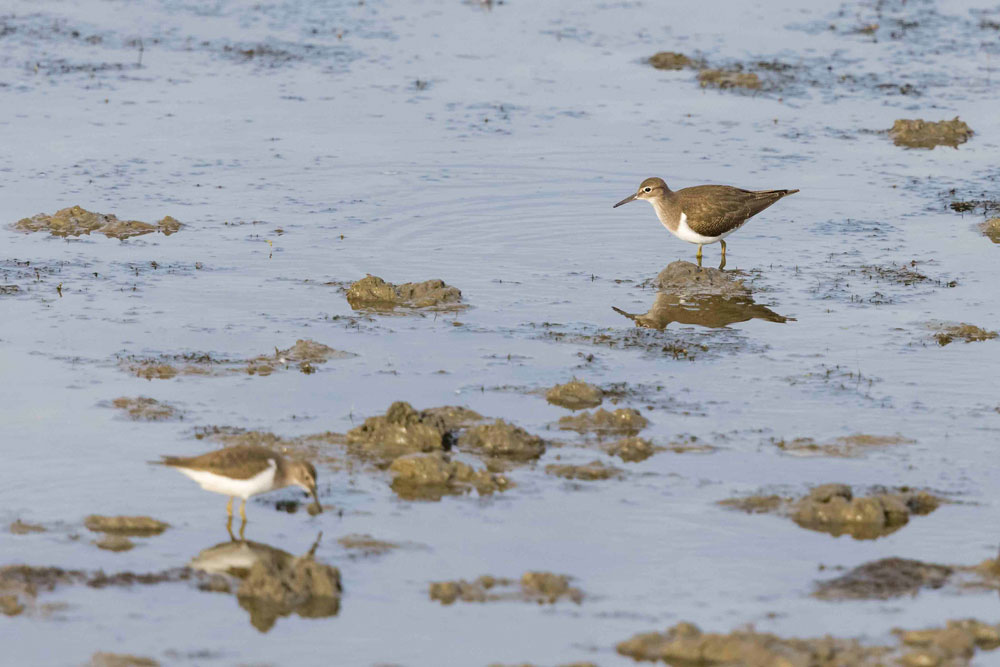 Gegen 19:00 Uhr konnte man auf der Kiebitzwiese, unterhalb des Aussichtshügels, einige Limikolen beobachten. Dort waren unter anderem mindestens 12 Flussuferläufer, ein Alpenstrandläufer, ein Kiebitz, 3 Silberreiher, min. 3 Graureiher, und eine Weisswangengans.