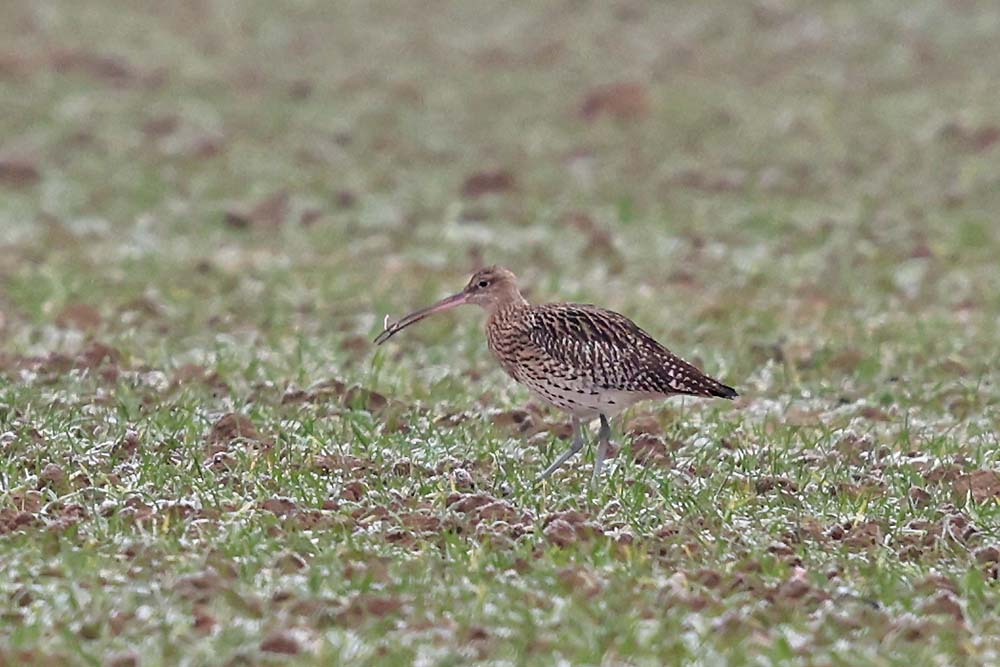 Besonders unerfahrene Jungvögel wie hier ein diesj. Graureiher (Frdbg.-Ostbüren) kommen bei Frost und Kälte schnell an ihre Grenzen, wenn nicht ausreichend Nahrung gefunden wird …, 21.11.2025 (Foto: Bernhard Glüer)… dieser Steinkauz zwischen alten Kopfweiden nahe Bönen wirkt zumindest relativ entspannt…, 19.11.2025 (Foto: Bernhard Glüer)… das mehrjährige Habichtweibchen (Strickherdicker Feldflur) dürfte genügend Erfahrung mit dem Beuteerwerb haben. Trotzdem sieht man Habichte deutlich seltener als in zurückliegenden Jahren. Deshalb ist auch die aus Bönen von H. Peitsch am 17.11. hier gemeldete Beobachtung erfreulich. 20.11.2025 (Foto: Bernhard Glüer)Weit genug wegziehen, wenn `s ungemütlich wird, ist im Zweifel immer eine Lösung. Kraniche über Frdbg.-Hohenheide, 20.11.2025 (Foto: Bernhard Glüer) Auf seiner Rast (Strickherdicker Feldflur) hat dieser Große Brachvogel einen scheinbar gefrorenen Regenwurm gefunden…, 21.11.2025 (Foto: Bernhard Glüer)… sein Start zum Weiterzug hätte fast ein unerwartetes Ende gefunden …, 21.11.2025 (Foto: Bernhard Glüer)… dieser Wanderfalke (diesj. – offenbar links beringt) ist urplötzlich mit hohem Tempo hinter dem Brachvogel und verfolgt ihn über einige Hundert Meter. Vielleicht hat er es mit dem Beutestoß aber auch nicht ganz ernst gemeint, denn Federn an der Schnabelspitze zeugen von einer bereits vorausgegangenen Mahlzeit …, 21.11.2025 (Foto: Bernhard Glüer)… eine von heute erstaunlich vielen Goldammern in der „Strickflur“ (hier ein Weibchen). – Relativ schreckhaft und immer fluchtbereit ist ihre tatsächliche Anzahl immer erst dann annähernd zu erfassen, wenn in Panik alles davonstiebt, weil ein Greif auftaucht oder anderweitig „Alarmstimmung“ aufkommt …, 22.11.2025 (Foto: Bernhard Glüer)… besonders erfreulich: auch weiterhin ab und zu im Schwarm mal eine Grauammer…, 22.11.2025 (Foto: Bernhard Glüer)… es bleibt schwierig, zu ergründen, ob jeweils dieselbe Grauammer vor einem sitzt. Vor drei Tagen waren mal 2(!) Exemplare gleichzeitg zu sehen, 22.11.2025 (Foto: Bernhard Glüer)