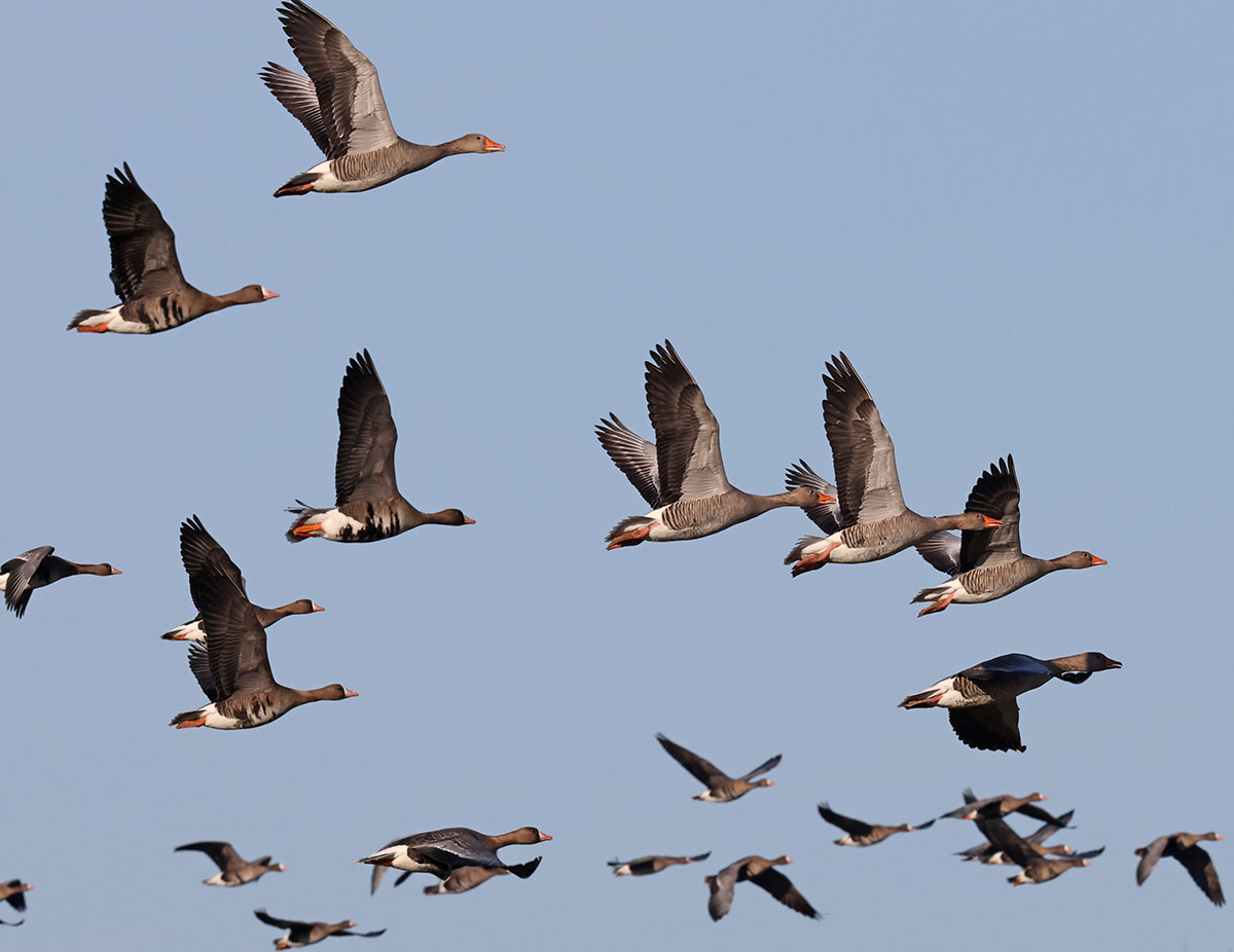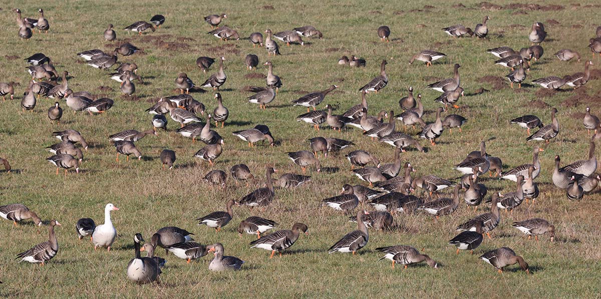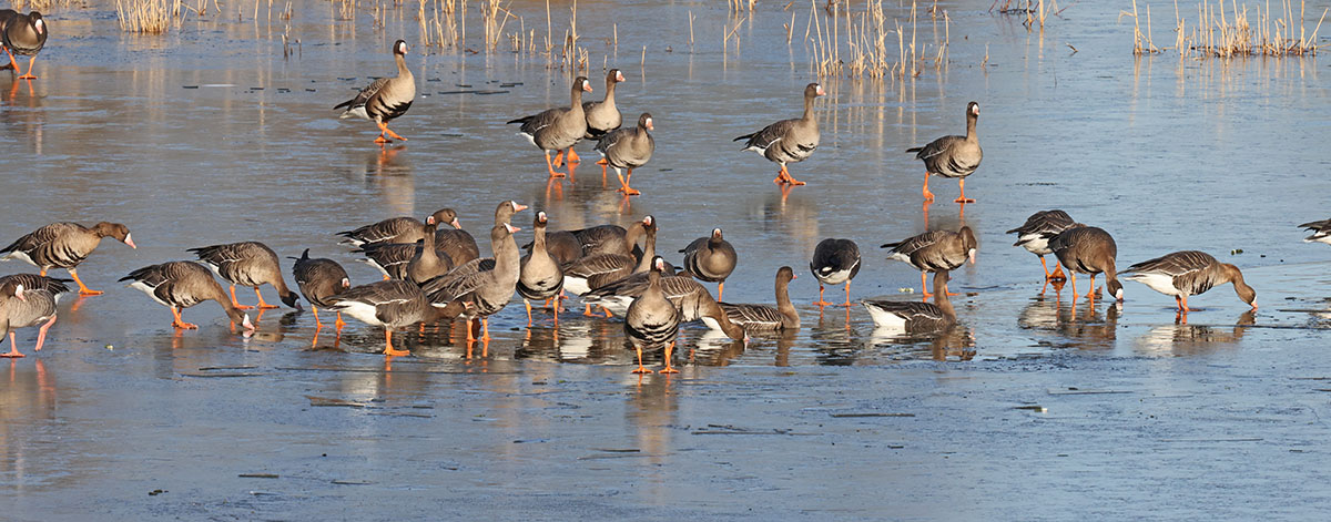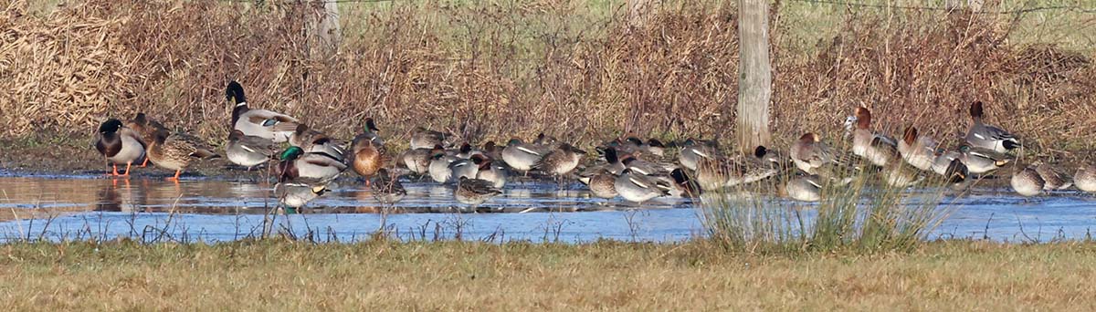 Das sonnig-kalte Winterwetter beschert weiterhin die eine oder andere Beobachtung von Wintergästen und auch schon erste Heimkehrer wie ostwärts ziehende Feldlerchen und in den Hemmerder Wiesen (für mich) den ersten Kiebitz des neuen Jahres. Ebenda auch wieder zahlreiche Gänse und Enten, die teilweise auf umliegenden Feldern Nahrung suchen, so dass das NSG dann wie „leergefegt“ erscheint, bis dann teils mit massenhaften Einflügen sich die Flächen wieder füllen. Heute unter anderem >300 Blässgänse, ~60 Graugänse, >18 Tundrasaatgänse, ~15 Kanadagänse, 2 Rostgänse, ~130 Stockenten, ~80 Krickenten, ~10 Schnatterenten, 4 Pfeifenten, 2 Spießenten, 3 Höckerschwäne, >4 Graureiher.