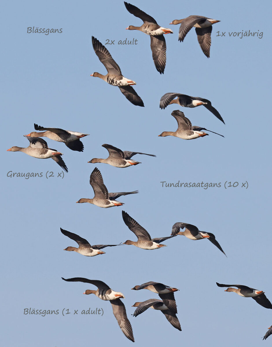 Noch im alten Jahr (29.12.) ein Trupp von 11 Tundrasaatgänsen in den Hemmerder Wiesen.