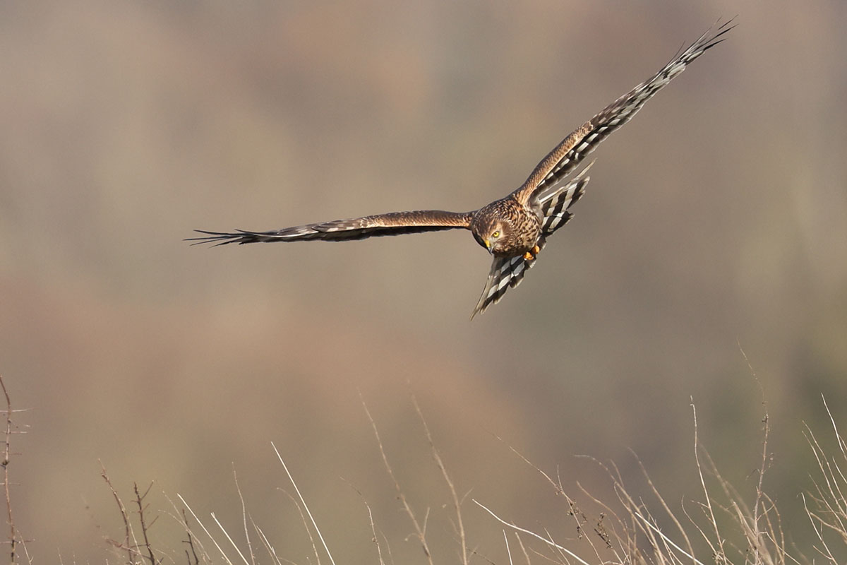 In den Hemmerder Wiesen hielt sich am 20.12. längere Zeit eine weibchenfarbige Kornweihe auf, die sich zwischendurch auf den Spitzen einer Hecke niederließ.