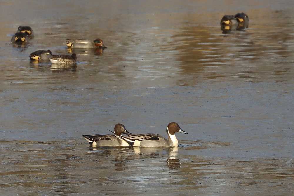 Ich durfte am Samstag (17.01.2026) einer männlichen Kornweihe beim Jagen in den Hemmerder Wiesen zusehen. Neben den anderen verlässlichen Wintergästen sind mir noch die Spießenten aufgefallen, die zusammen mit Krick- und Schnatterten sowie einigen Rost- und Kanadagänsen auf dem vorderen Teich unter dem Beobachtungshügel gründelten, während der hintere von recht vielen Bläßgänsen „besetzt“ war.