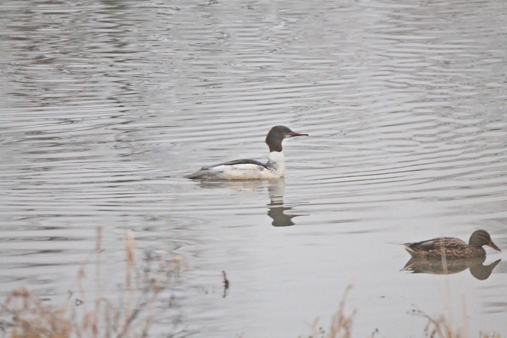 2 Höckerschwäne, eine Graugans, 118 Schnatterenten, 4 Krickenten (2,2), 65 Stockenten+2 Bastard/fehlfarben, eine Tafelente (1,0), 49 Reiherenten (viele!) (29,20), 5 Kormorane, ein Silberreiher, ein Graureiher und 4 Blässrallen.