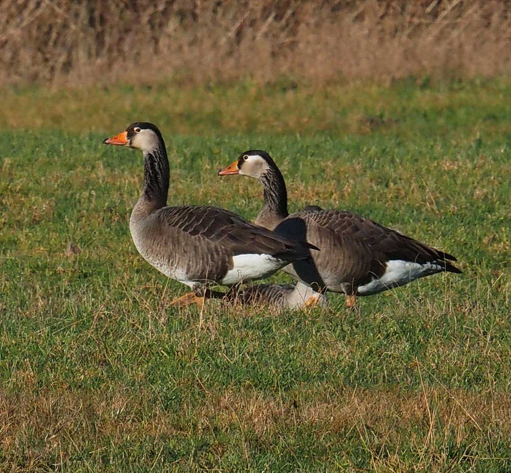 Neben den üblichen Verdächtigen hielten sich am Morgen Heerscharen Bläss- und Saatgänse im Bereich der großen Flutmulde auf. Insgesamt dürften es mindestens 500 Gänse beider Arten gewesen sein. Es herrschte ein stetiges Kommen und Gehen. Das Verhältnis zwischen Bläss- und Saatgänsen lag bei etwa 5 : 3. Neben ungezählten Stock-, Krick- und Schnatterenten waren auch ca. 15 Pfeifenten und zwei Spießenten (m) anwesend. Außerdem 24 Kiebitze (zeitweilig rastend), ein Kranich (hinter dem Kirchbach aufsteigend), drei Silberreiher, eine Teichralle an der Amecke sowie acht Pieper (vmtl. Wiesenpieper).