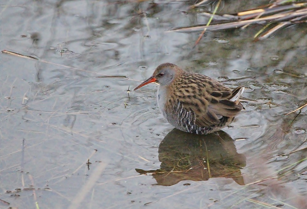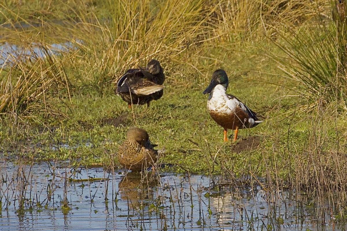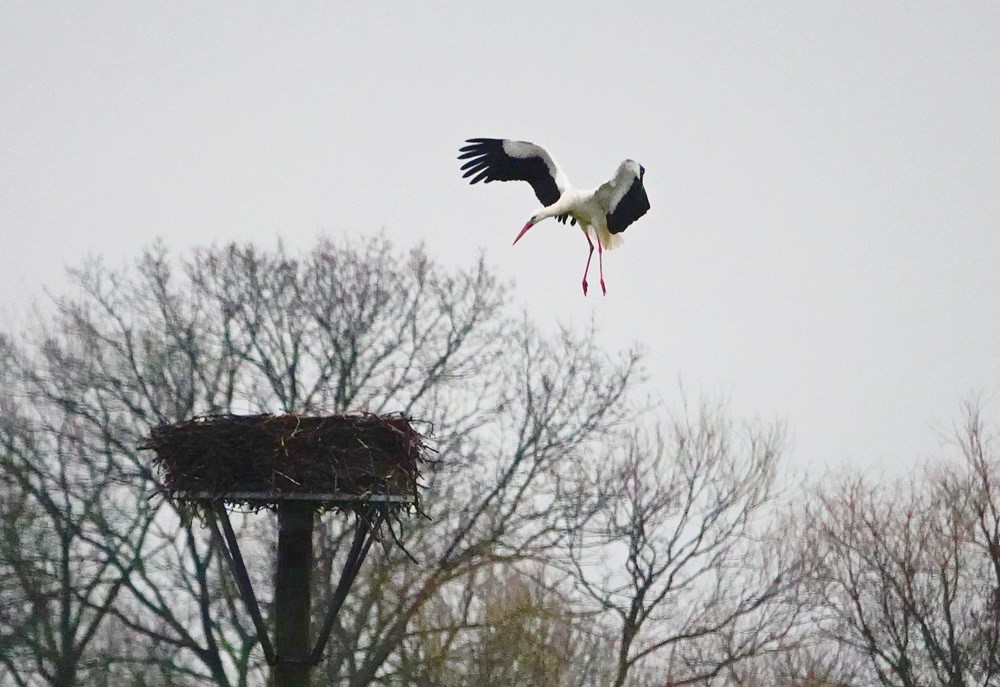 88 Kanadagänse, 50 Schnatterenten (27,23), 5 Krickenten (3,2), 112 Stockenten, eine Wasserralle, ein Weißstorch (seit mind. Di., 10.02., zurückkehrt, Beob.: B.Nikula), ein Silberreiher, ein Graureiher, ein Habicht (0,1), eine Bekassine, mind. 32 überfliegende Lachmöwen, ein Gänsesäger sowie ungezählte Wiesenpieper.
