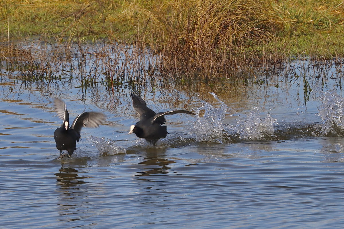 Seidenreiher bei der Gefiederpflege …. am 25.02.2026 (Foto: A. Hünting)und erfolgreich bei der Jagd. …. am 25.02.2026 (Foto: A. Hünting)und im Größenvergleich zum Silberreiher (re. im Bild) …am 25.02.2026 (Foto: A. Hünting)Zwei Weißstörche auf der Nisthilfe, die gut miteinander können. ….. am 25.02.2026 (Foto: A. Hünting)Zwei Weißstörche auf dem Hochsitz, die nicht so gut miteinander können! Der obere der beiden ist der beringte Weißstorch von der Nisthilfe, der hier dem Nachbarn einen Besuch abstattet. …. am 25.02.2026 (Foto: A. Hünting)Inzwischen ist bei den Heckrindern das vierte Kalb geboren. Es hat zwar noch keine Ohrmarken, ist aber sicher schon einige Tage alt, denn einen Nabelschnurrest gibt es nicht mehr zu sehen. …. am 25.02.2026 (Foto: A. Hünting)Auch der Höckerschwankadaver (siehe Meldung vom 06.02.2026) ist mittlerweile größtenteils verzehrt. Vermutlich hat sich ein Fuchs daran gütlich getan. Bis Anfang des 20. Jahrhunderts standen Höckerschwäne noch auf der Speisekarte und auch heute noch gelten Höckerschwäne als jagdbares Wild. Allerdings werden sie in NRW zum Glück kaum noch geschossen. …. am 25.02.2026 (Foto: A. Hünting)