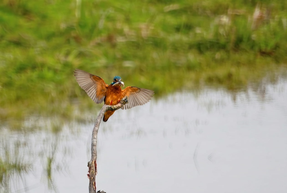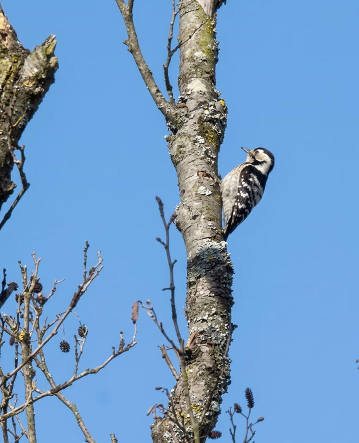 Außerdem konnten wir heute zwei Flussregenpfeifer bei Verfolgungsflügen beobachten sowie am Rande der Kiebitzwiese einen Schwarzmilan und einen Kleinspecht. Morgens strich eine männliche Rohrweihe flach über den Flößergraben. Des Weiteren rasteten heute 5 Waldwasserläufer in der Nähe des neuen sowie 4 Bekassinen am alten Aussichtshügel. Erwähnenswert ist zudem eine rastende männliche Löffelente, die am Freitag (03.04.26) zwischen den üblichen Enten zu sehen war.