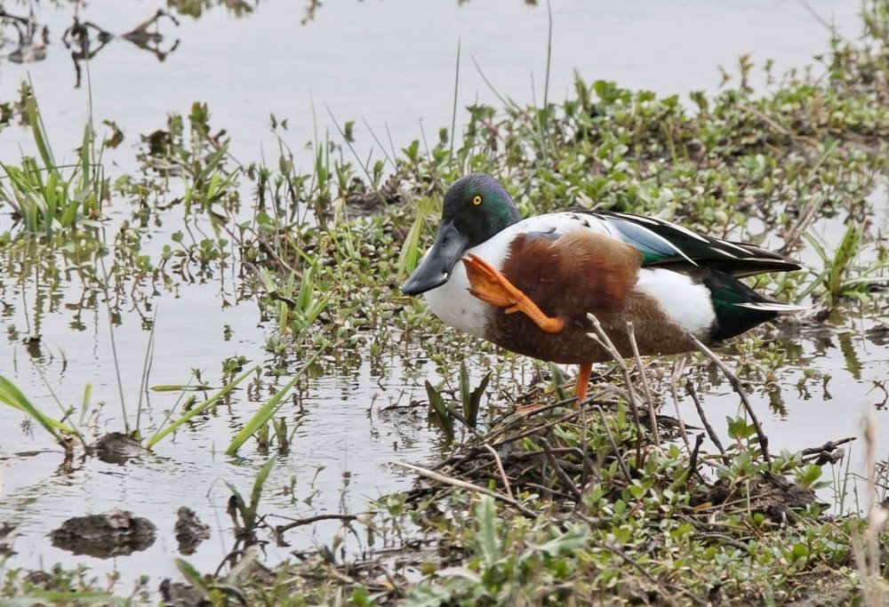 Bezüglich möglicher Bruten der Schnatterente bleibt festzuhalten, dass die Art im vergangenen Winter deutlich seltener anzutreffen war. Ein plausibler Grund hierfür dürften die häufig zugefrorenen Vernässungsflächen sein. Heute (am 06.04.26) war zumindest mit 10 Individuen (5 Paare) dieser Art eine entsprechende Ausgangslage vorhanden.