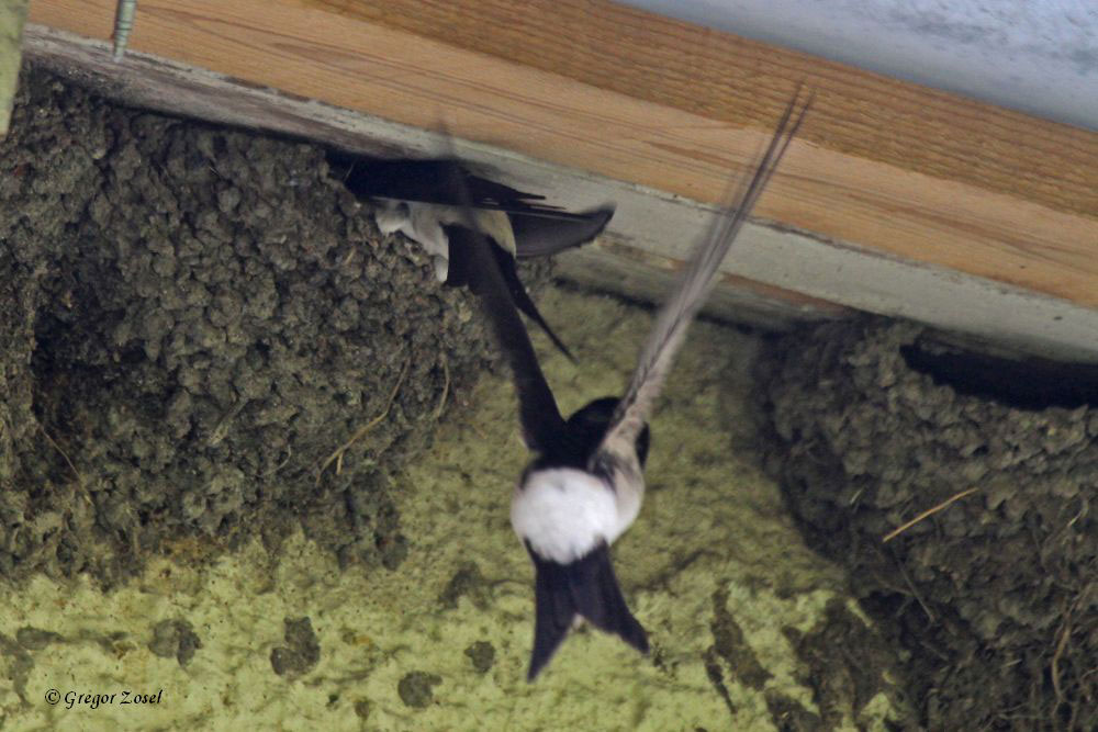 Die wenigen Mehlschwalben, die bereits aus ihren Winterquartieren zurück gekommen sind, suchen ihre alten Nester an den Gebäuden auf. Hier an einem Haus am Kloster…..am 11.04.2026 (Foto: Gregor Zosel)