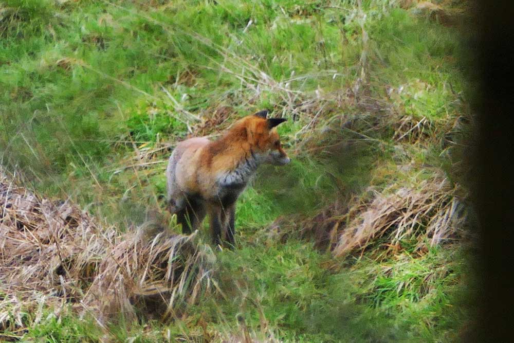 Zwei Füchse liefen mir auch entgegen. Der Wind stand günstig. Und konnte durch die Büsche und Geäst schwache Belegfotos machen.