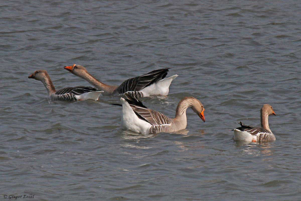 Die beiden Höckerganspaare balzen um die Wette..am 09.04.2019 (Foto: Gregor Zosel)