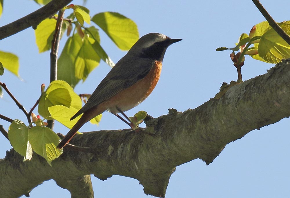 Am Abend im eigenen Garten ein männlicher Gartenrotschwanz.