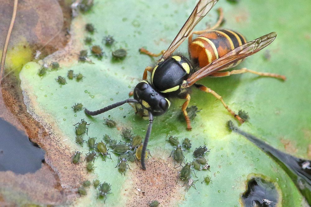 Interessantes aus der Insektenwelt: im eigenen Garten sind dieser Tage regelmäßig Rote Wespen (Vespula rufa) am Gartenteich zu beobachten (nach der Meldung vom 05.08. ein weiterer Nachweis dieser seltenen Wespenart). Die hektisch umherfliegenden Wespen landen immer wieder auf Schwimmblättern der Seekanne – jedoch nicht um Insekten zu jagen oder Wasser aufzunehmen, sondern es werden Zuckerausscheidugen von winzigen Blattläusen aufgenommen, die nur auf den Blättern der Seekanne sitzen. Ebenfalls im eigenen Garten heute ein Wanderperlmutterfalter (Issoria lathonia) – gestern noch ein später Schwalbenschwanz. Südlich Frdbg.-Ostbüren – auf einem Luzernefeld – zeigen sich dieser Tage bis zu 5 Postillone (eine erste Sichtung dieses unregelmäßig auftretenden Wanderfalters gab es – ebenfalls in Ostbüren – am 27.07.) und bis zu 10 Goldene Achten (beide Falter legen ihre Eier unter anderem an Luzerne!).