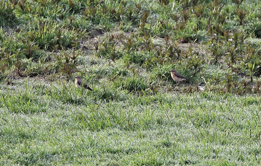 4 Rohrammern, 2 Goldammern, 2 Dorngrasmücken,1 Gartengrasmücke, 2 Flussregenpfeifer, 3 Graureiher, 5 Höckerschwäne, 1 Hybridgans (Schnee x Kanada), 1 Streifengans, 2 Weißstörche, 4 Blässrallen, 45 Nilgänse+5 Pulli, 20 Graugänse, 18 Kanadagänse, 12 Schnatterenten, 8 Reiherenten, 1 Kormoran, 1 Braunkehlchen, 1 Kiebitz, 2 Steinschmätzer, 4 Rostgänse, 1 Bekassine, 1 Schwarzmilan, 1 Rotmilan, 1 Rohrweihe, mindestens 2 singende Sumpfrohrsänger, 1 Neuntöter und ein sehr kurz rufender Kuckuck von der Ruhr.