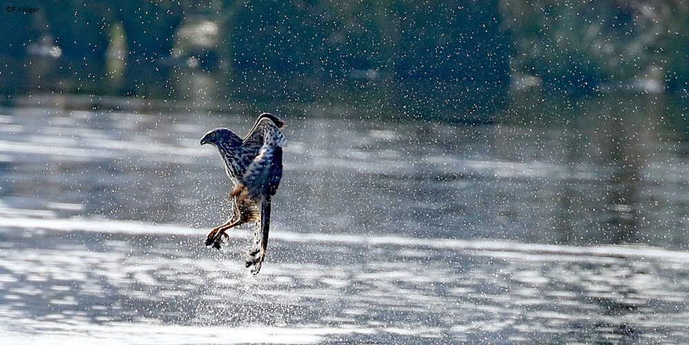 Habicht fliegt knapp über die Wasseroberfläche der Röllingwiesen. 28.03.2022 (Foto: Peter Krüger)Die abtauchende Blässralle wird weiter im Rüttelflug verfolgt. Denn auch der Habicht weiß: Was abtaucht-taucht irgendwann auch wieder auf. 28.03.2022 (Foto: Peter Krüger)Einmal in den Fängen des Habichts hat die Blässralle keine Chance mehr. 28.03.2022 (Foto: Peter Krüger)Die Blässralle wird unter Wasser gehalten. Sicher keine alltägliche Beobachtung und möglicherweise für manchen Betrachter gewöhnungsbedürftig, aber in der freien Natur unter Wildtieren ein normaler Vorgang im Kreislauf des Lebens.28.03.2022 (Foto: Peter Krüger)Nach dem „Loslassen“sieht man auch noch die schwarzen Federn der Beute an den kräftigen Fängen des Habichts. 28.03.2022 (Foto: Peter Krüger)Was passiert als nächstes? Die ausgewachsenen Graugänse haben ihn jedenfalls nicht zu befürchten. 28.03.2022 (Foto: Klaus Matull)Kurz darauf hebt er wieder ab….28.03.2022 (Foto: Klaus Matull)…und möchte sich seine Beute sichern. 28.03.2022 (Foto: Peter Krüger)Der Habicht versucht die Beute fast schon in „Fischadler-Manier“ unter Wasser zu greifen….(28.03.2022 (Foto: Klaus Matull)….fliegt los…28.03.2022 (Foto: Klaus Matull)….schafft es aber nicht sich seine Beute zu sichern.28.03.2022 (Foto: Klaus Matull)Der klitschnasse Habicht sonnt sich über einen längeren Zeitraum um ausgiebig trocknen zu können. 28.03.2022 (Foto: Klaus Matull)Nach wie vor hier: Junger Kranich in den Schwerter Röllingwiesen. 28.03.2022 (Foto: Klaus Matull)Emsig hat sich ein Buntspecht Paar im Waldgebiet eine Kinderstube errichtet.28.03.2022 (Foto: Klaus Matull)