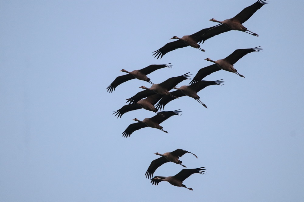 Einer der beiden umherfliegenden Schwarzmilane. …. am 27.04.2022 (Foto: A. Hünting)Abflug …. am 27.04.2022 (Foto: A. Hünting)…. am 27.04.2022 (Foto: A. Hünting)Nachdem die Grau- und Nilgänse bereits Nachwuchs führen, ist es jetzt auch bei den Kanadagänsen soweit. …. am 27.04.2022 (Foto: A. Hünting)Sieht so aus, als begutachteten die Heckrinder die Wiesenschafstelze ganz genau, nach dem Motto: Was bist Du denn für ein bunter Vogel? …. am 27.04.2022 (Foto: A. Hünting)Und plötzlich, ohne Rufe und recht niedrig, die Kamera war bereits ausgeschaltet und der Fotograf bereit, den Heimweg anzutreten, 10 Kraniche auf dem Weg nach Osten. …. am 27.04.2022 (Foto: A. Hünting)Im perfekten Formationsflug… …. am 27.04.2022 (Foto: A. Hünting)… und hinter den Bäumen im östlichen Teil der Kiebitzwiese niedergehend und vermutlich im Hammer Wasserwerk zur Rast landend. …. am 27.04.2022 (Foto: A. Hünting)