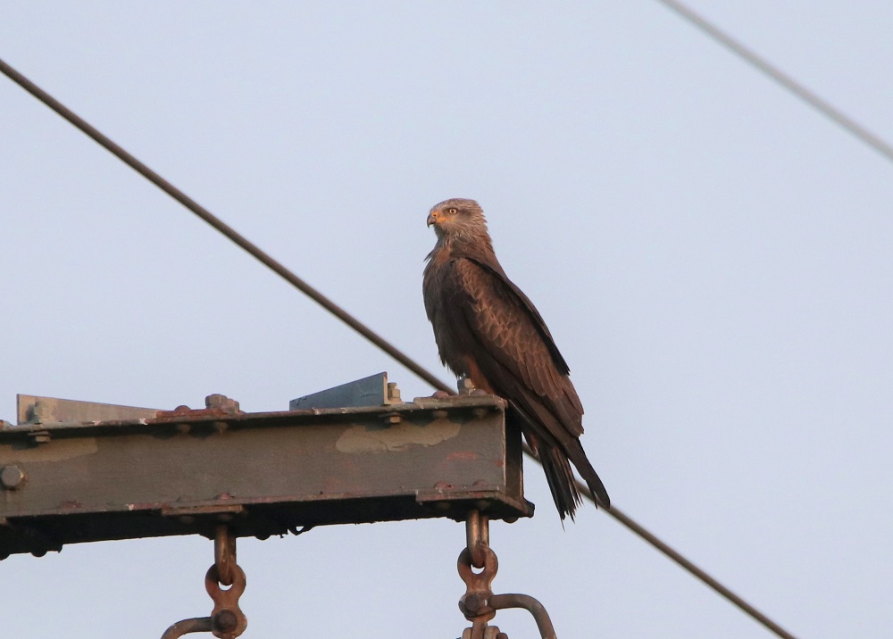 Am Rest-Bauernhof selbst war noch ein Turmfalkenweibchen sitzend auf einem alten Stromkabel zu sehen.