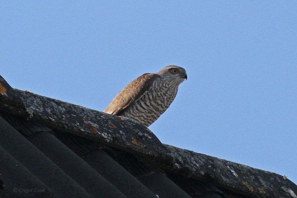 Ich habe soeben ein Sperbermännchen bei uns in Werl-Nord fotografieren können. Kein besonders gutes Foto, aber man erkennt’s. Wahrscheinlich ist das kein ungewöhnliches Phänomen. Kann mir vorstellen, dass Biogasanlagen / Monokulturen im Feldanbau / Insektensterben / Vögelsterben diese Entwicklung begünstigen. Denn Singvögel sind hier – gefühlt – reichlich vorhanden. Dazu liest man als Erstes, dass er ein Kulturfolger sei. Trotzdem witzig, dass ihn ein paar Bäume im Garten zum Brüten ausreichen.