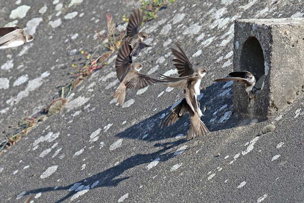 Nördlich Hemmerde machte dann ein rufender Wanderfalke auf sich aufmerksam. Er fetzte sich in der Luft mit einem balzenden Rohrweihenpaar und setzte dann wiederholt einem am Boden im Zwischenfruchtfeld fressenden Mäusebussard durch stetige Flugattacken zu (Mitbeobachter G. Herber-Busch). Schließlich landete er auf einem kleinen Haus. Nachdem der Mäusebussard verschwunden war, schnappte sich der Wanderfalke wohl den letzten Fleischbrocken und zog nach Norden ab.