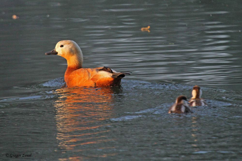 Rostgans mit Nachwuchs im Sonnenaufgang…am 15.05.2022 (Foto: Gregor Zosel)