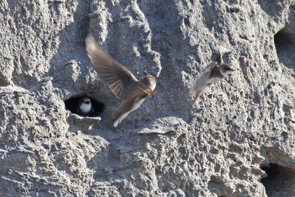 Am Fuße der Sandhügel und an der „Sandwäsche“ sammeln Mehlschwalben eifrig das Nistmaterial für ihre Nester…am 15.05.2022 (Foto: Gregor Zosel)