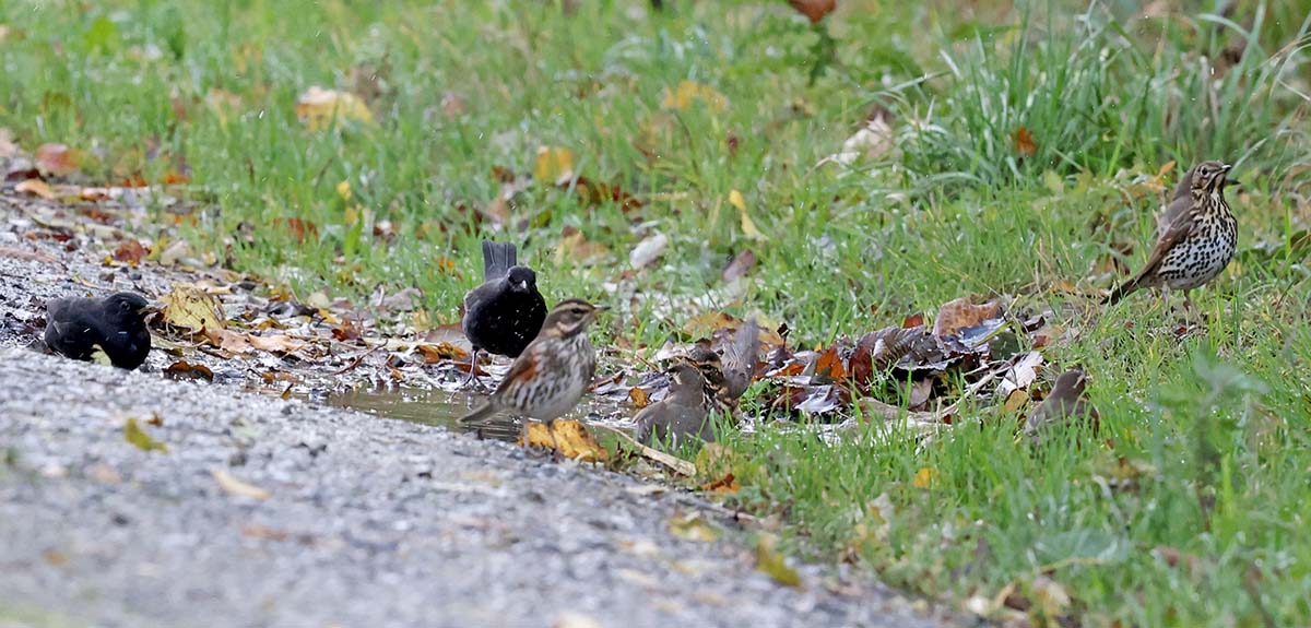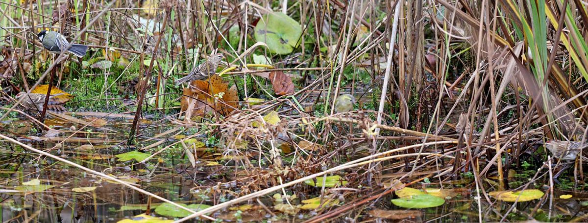 Die Beobachtungen am eigenen Gartenteich erbrachten auch in anderer Hinsicht interessante „Badegäste“: >6 Birkenzeisige, x Erlenzeisige, 3 Stieglitze, >1 Grünfink, 1 Kernbeißer, x Bergfinken, x Buchfinken, ~20 Haussperlinge, >4 Heckenbraunellen, 1 Zaunkönig, 1 Zilpzalp, 2 Singdrosseln, >7 Amseln, 30-50 Blaumeisen, 20-30 Kohlmeisen, >1 Haubenmeise, 2 Sumpfmeisen, >4 Rotkehlchen, 1 Buntspecht, 2 Kleiber, 1 Turmfalke erbeutete (untypischerweise) zwischen Büschen nahebei vermutlich eine Tannenmeise.