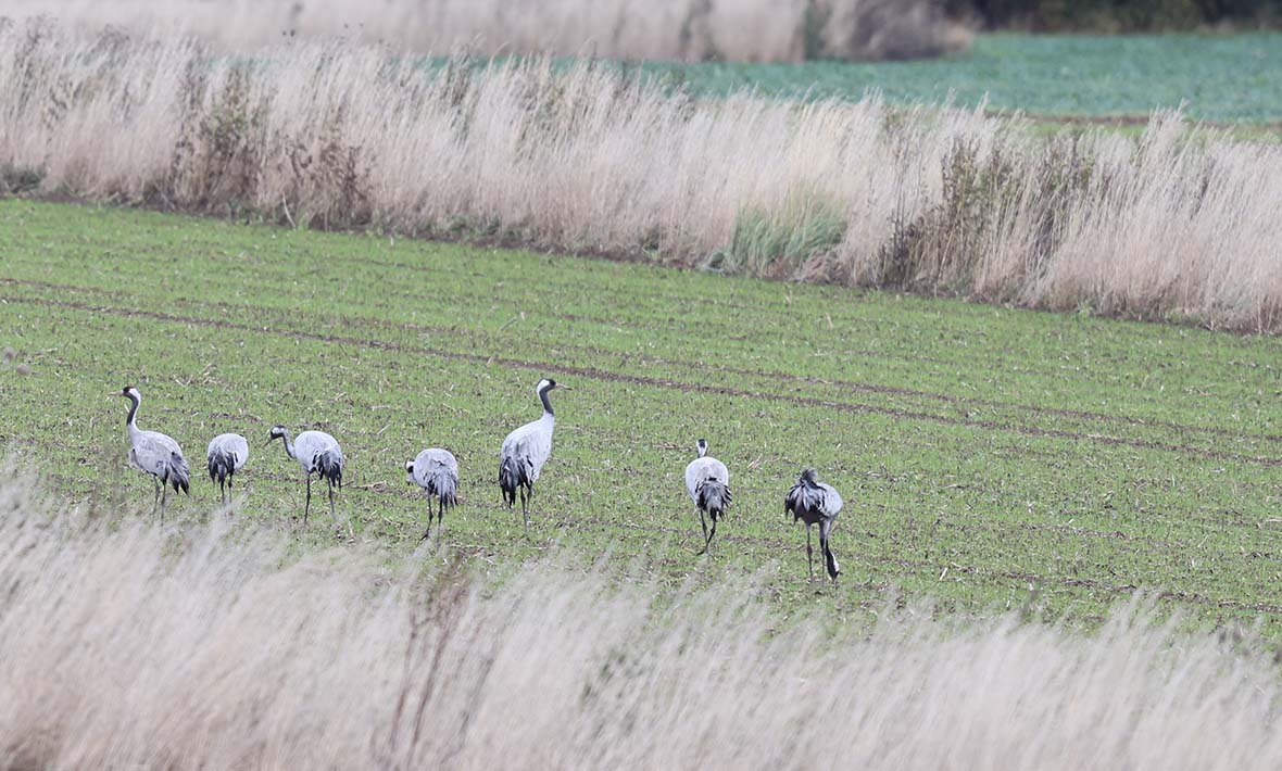 Auch andernorts fand sich heute relativ reiches Vogelleben: in vielen Beeren tragenden Hecken Hunderte Rotdrosseln, südlich Frdbg.-Ostbüren auch ~70 Wacholderdrosseln und auffallend viel Amseln, an einem Pferdestall ebenda noch 3 Hausrotschwänze. In Frdbg.-Landwehr eine Ringdrossel und in der Strickherdicker Feldflur unter anderem 7 rastende Kraniche.