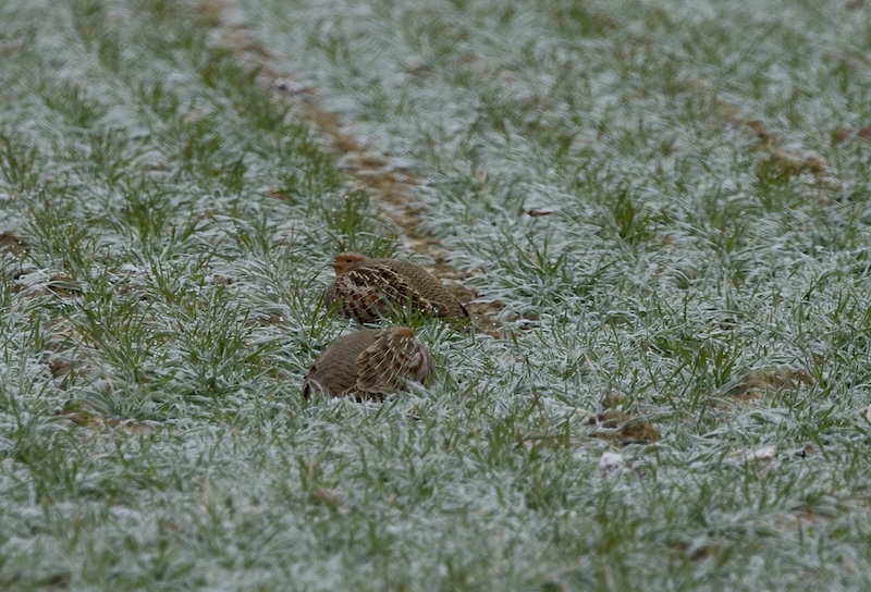 Büdericher Haar/Kreis Soest: Rebhuhnpaar, Silber- und Graureiher, Mäusebussard, Turmfalke und Feldhase am 23./25.01.2026 (C. Rethschulte)