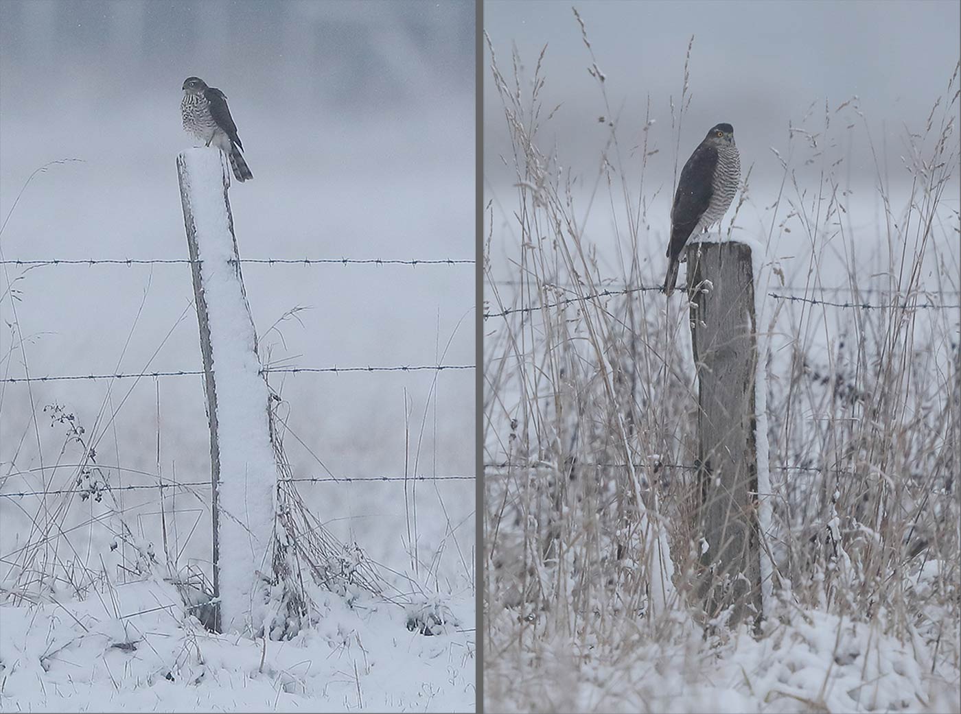 In den verschneiten Hemmerder Wiesen halten sich weiterhin zwei Brachvögel im Bereich der größtenteils nicht zugefrorenen Flutmulde auf. Im Gebiet heute auch eine jagende männliche Kornweihe sowie zwei Sperber.