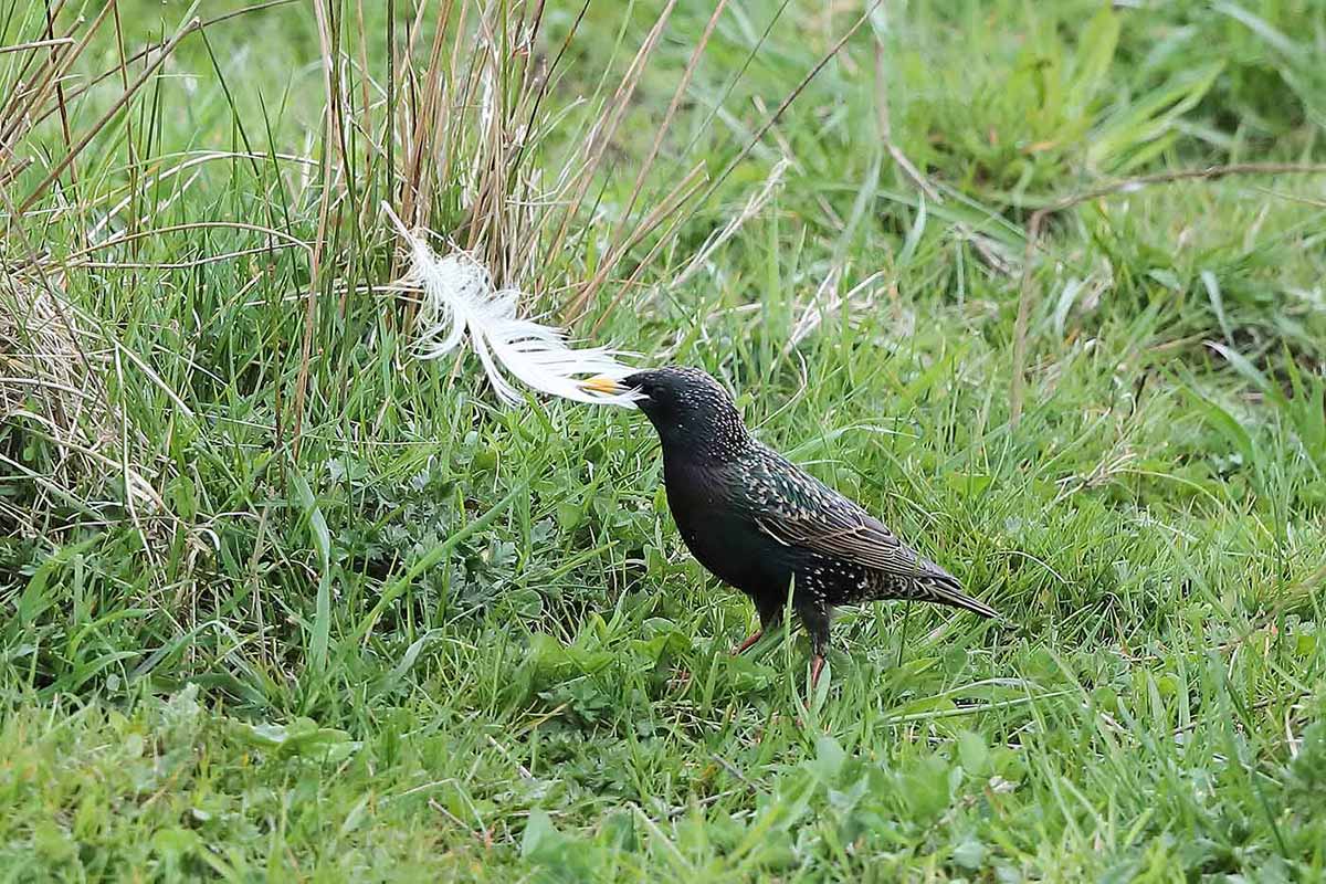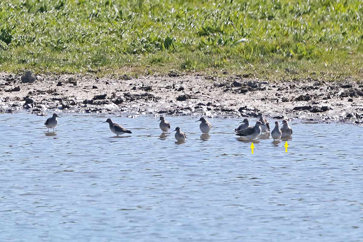Am Rande der Kiebitzwiese ein rufender Kuckuck (20.04.). Die Überreste des vor Wochen dort umgekommenen Höckerschwanes leisten gute Dienste. Etliche Stare sammelten die herumliegenden Federn ein und „entsorgten“ sie (20.04.). Heute tummelten sich auf den dortigen Grünlandflächen drei Grauganspaare mit ihrem Nachwuchs. Außerdem landeten vor dem alten Aussichtshügel acht Bruchwasserläufer in Begleitung von zwei Kampfläufern.
