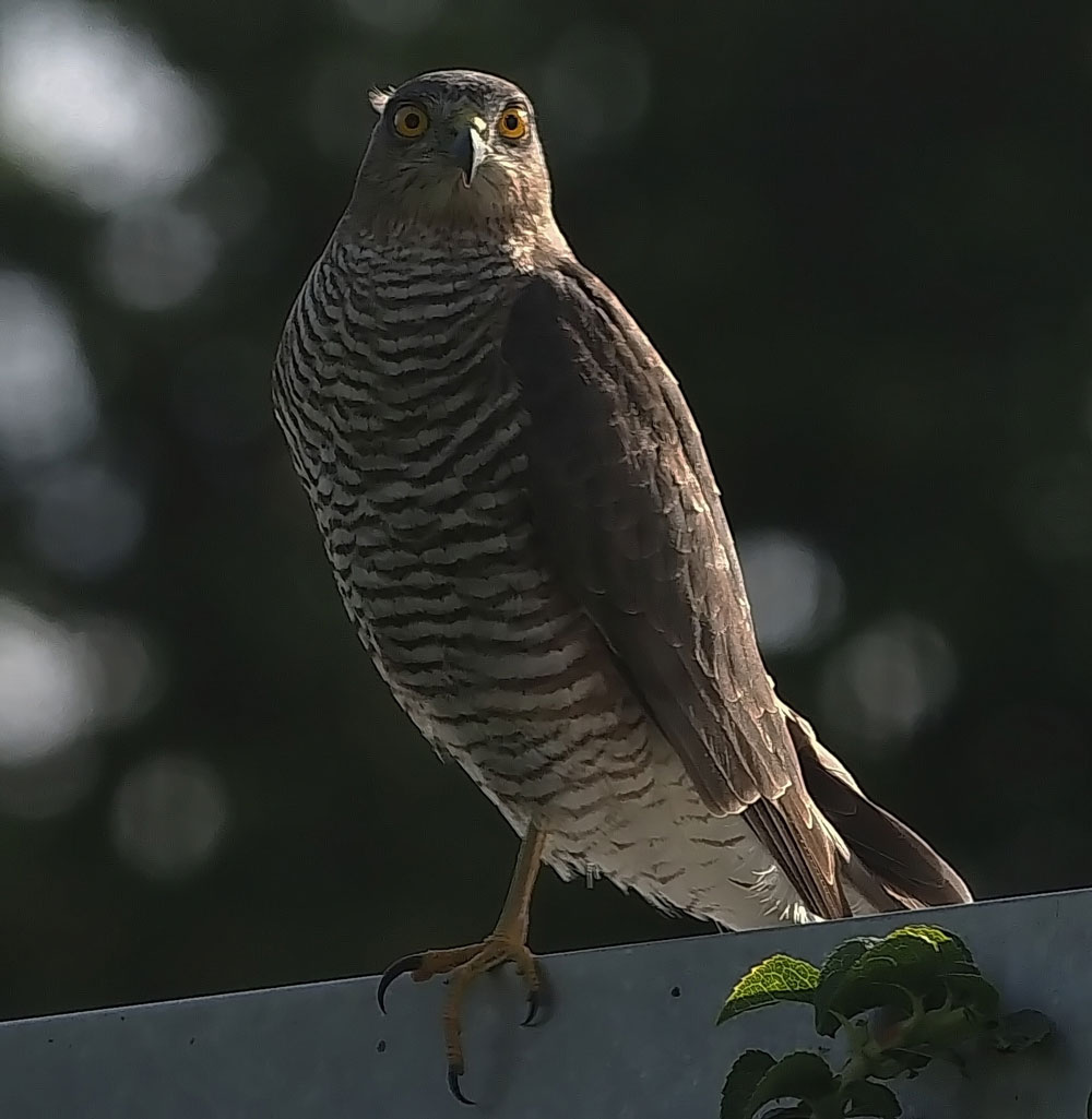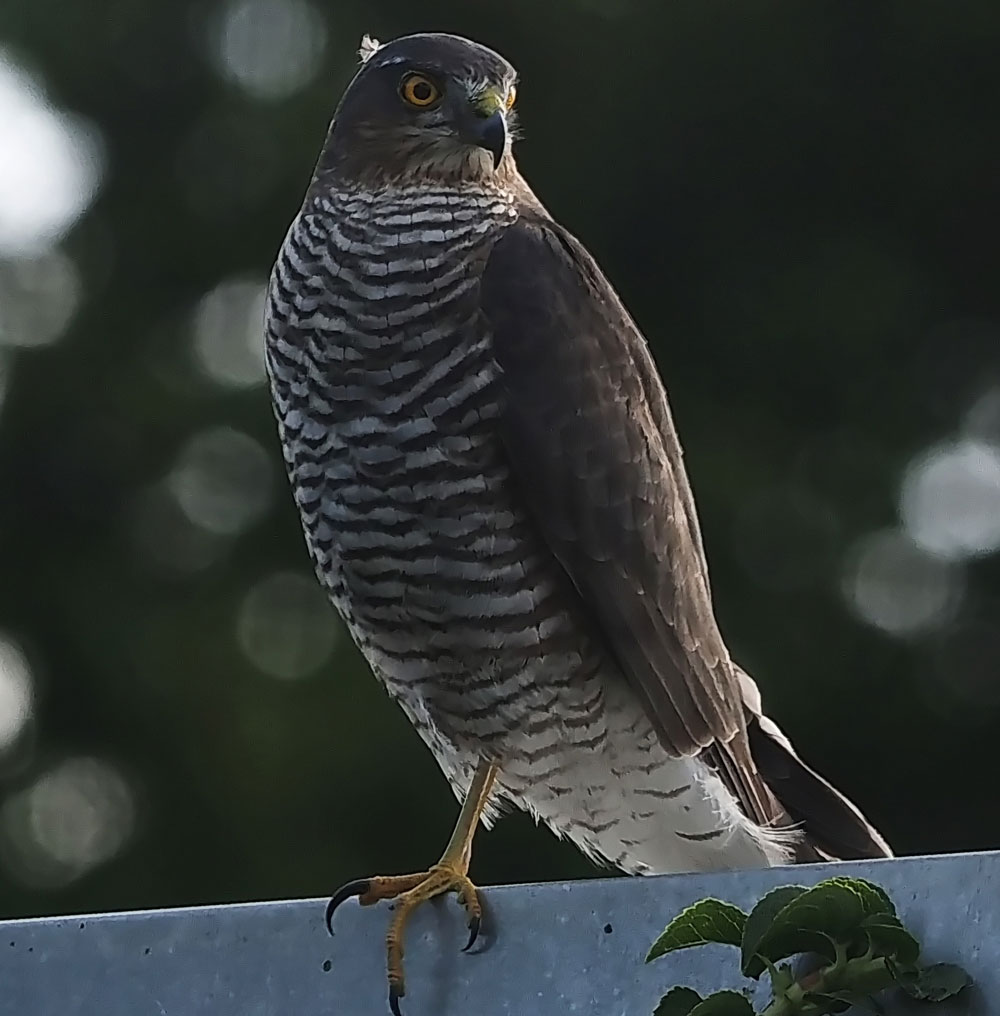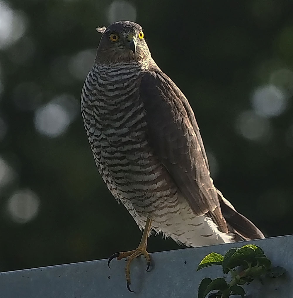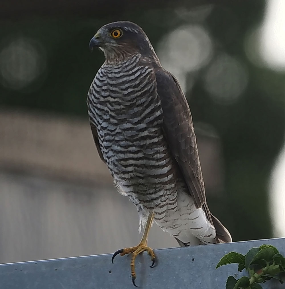 Am Sonntag, 14.09.2025 ein Sperber-Weibchen auf dem Haus meines Nachbarn in Werne. Einbeinig war das Tier nicht, beim Abflug waren beide Beine zu erkennen.