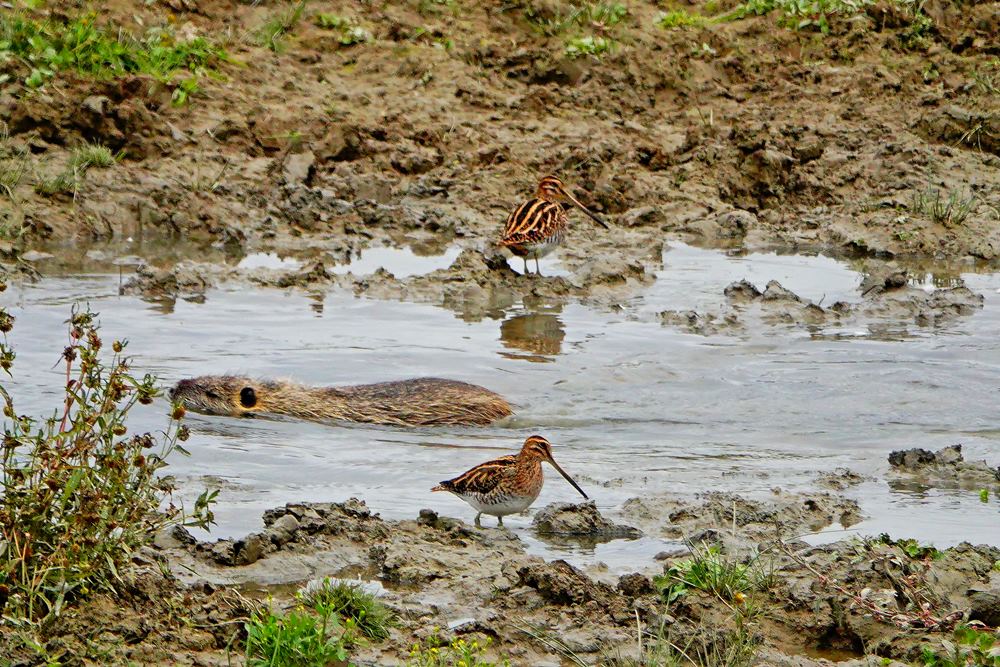 3 Höckerschwäne (einmal diesjährig), 7 Blässgänse (davon eine diesjährig), 184 Graugänse + ein Hybrid weiß gescheckt, 58 Nilgänse, 4 Rostgänse (Ein Paar vertreibt ein weiteres), 14 Krickenten, > 108 Stockenten, eine Knäkente, 3 Graureiher, 6 Bekassinen, ein Eisvogel, > 3 Zilpzalps, eine Mönchsgrasmücke, 2 Wintergoldhähnchen, 5 Singdrosseln, 2 Schwarzkehlchen (1,1), 2 Gebirgsstelzen und eine Rohrammer.