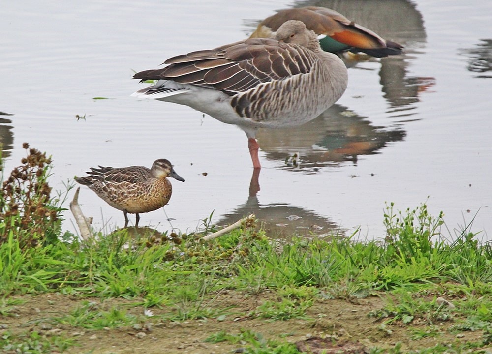 Unter >100 Stockenten und 3 Höckerschwänen (ein diesjähriger) hielten sich 8 Krickenten und eine weibchenfarbige Knäkente auf.