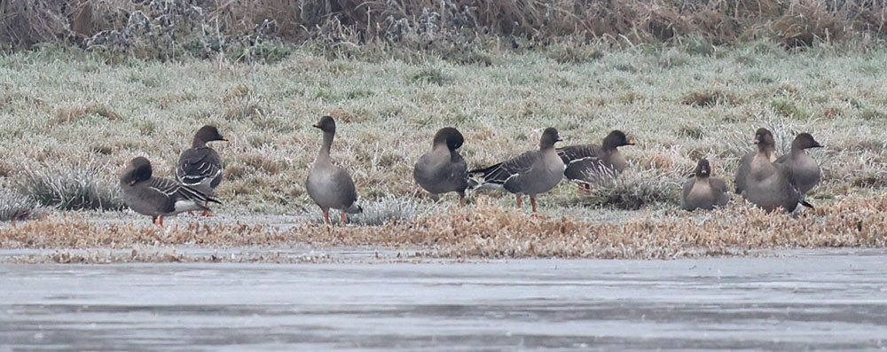 Noch im alten Jahr (29.12.) ein Trupp von 11 Tundrasaatgänsen in den Hemmerder Wiesen.